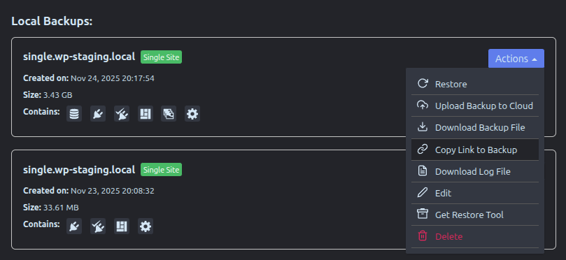 backup.wpstgImportant: Replace the backup link first before running the command. You can get the full path to a WP Staging backup on the page Backup & Migration → Actions → Copy Link to Backup: